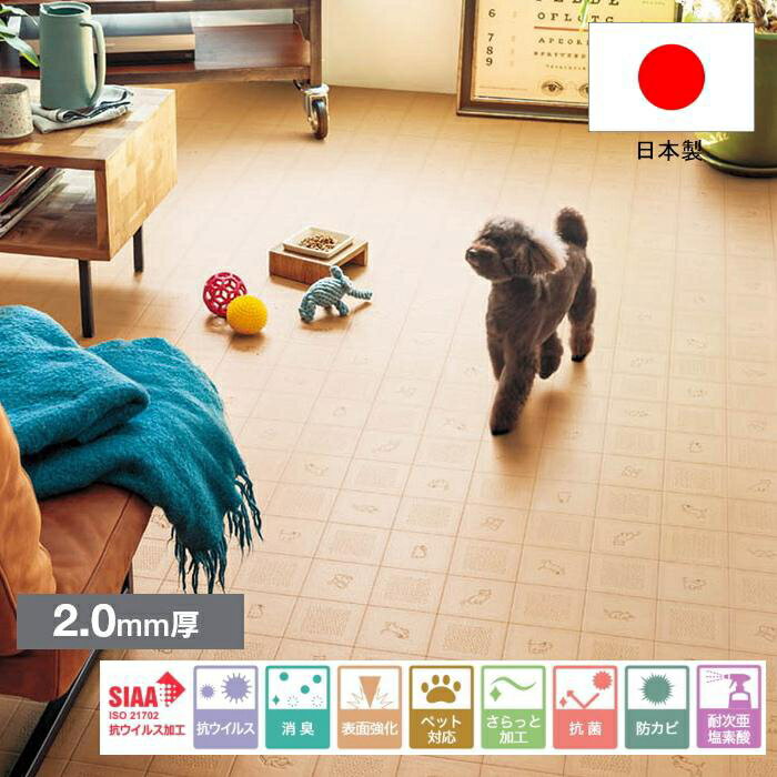 クッションフロア 抗菌 消臭 犬猫柄(カット販売) 約180cm巾 ※10cm単位ですので1m以上から購入可